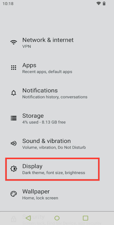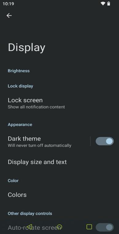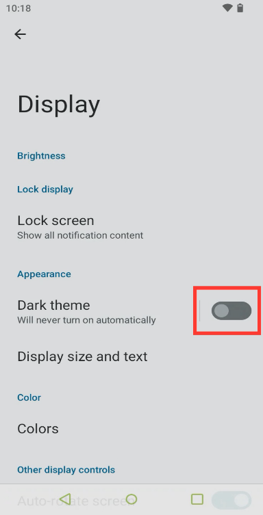 - Within the Display menu, select Dark Theme.
